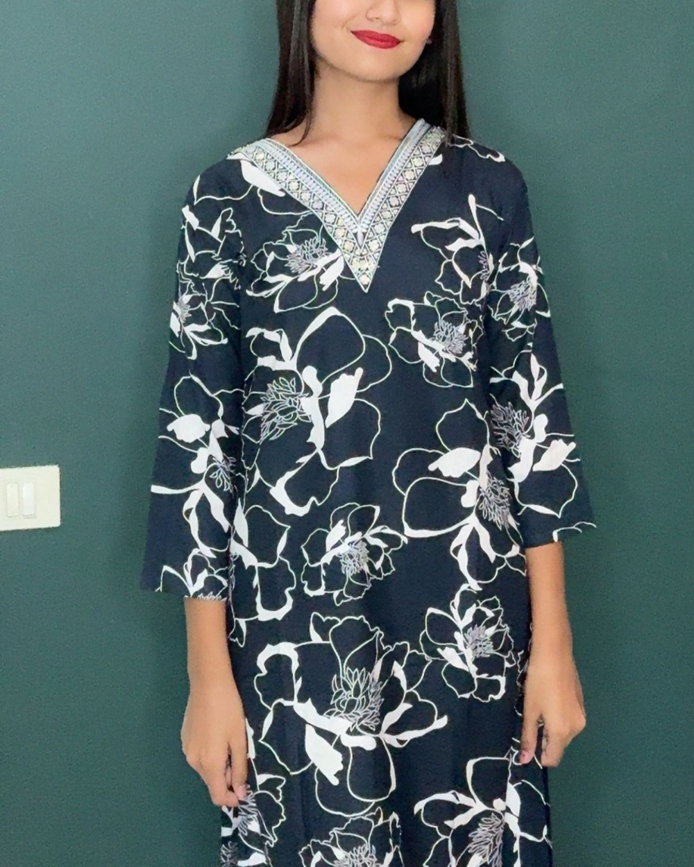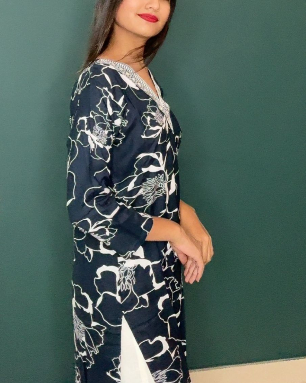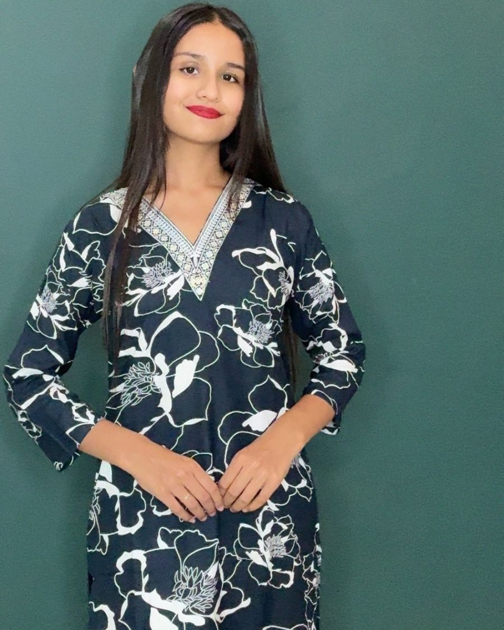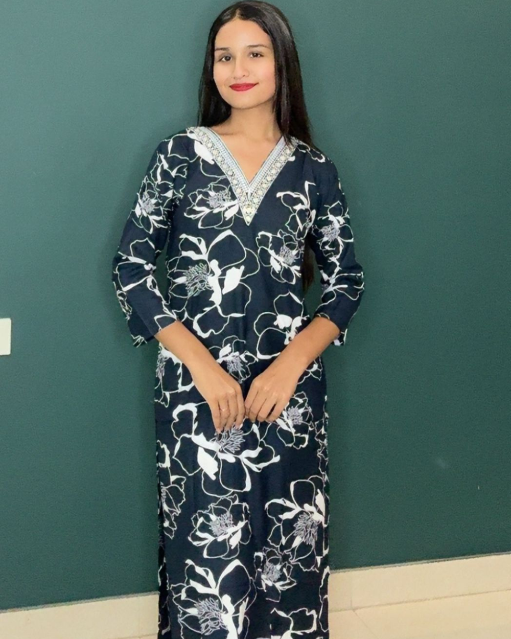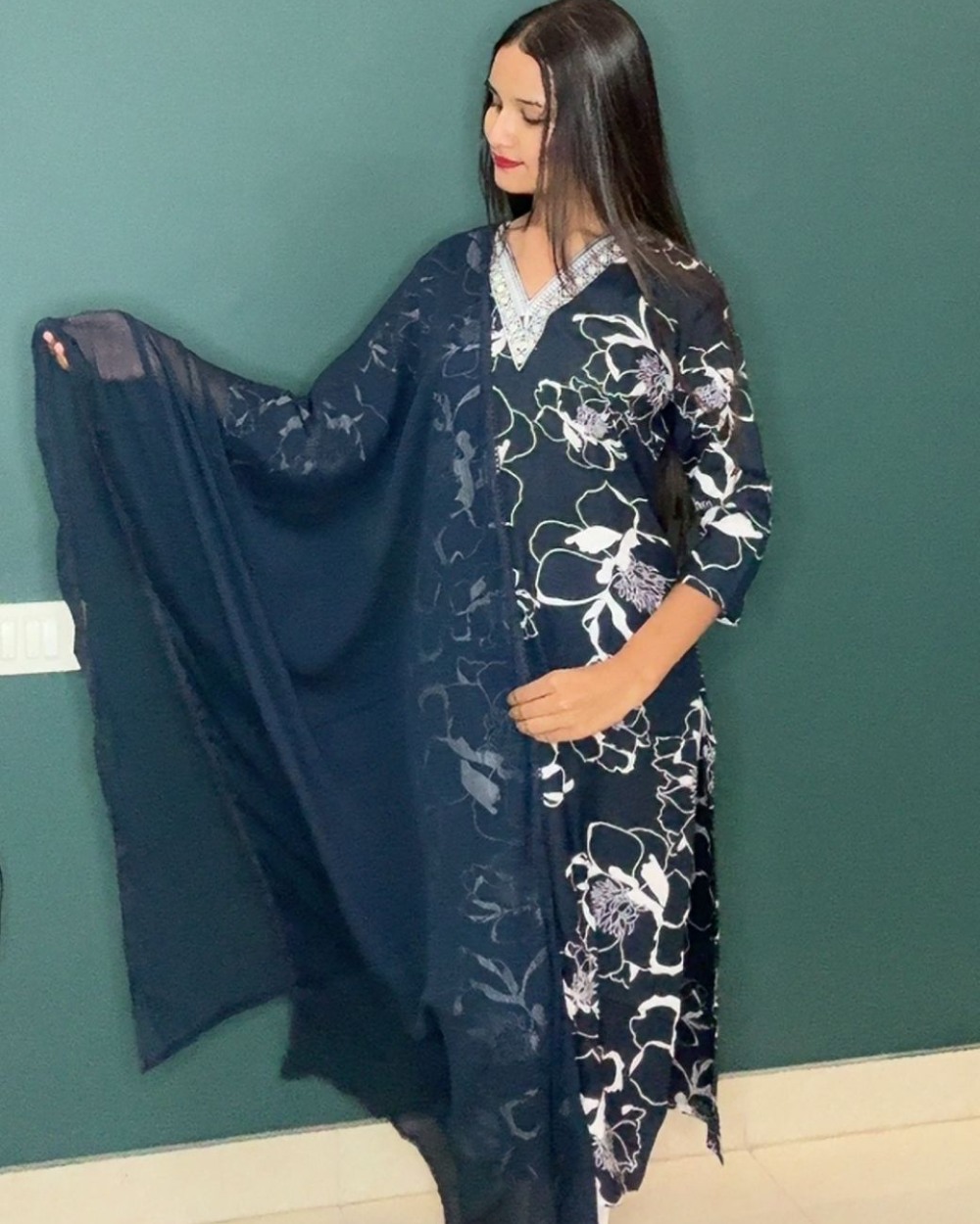 TANRAAYA Cotton Blend blue printed kurta set with dupatta