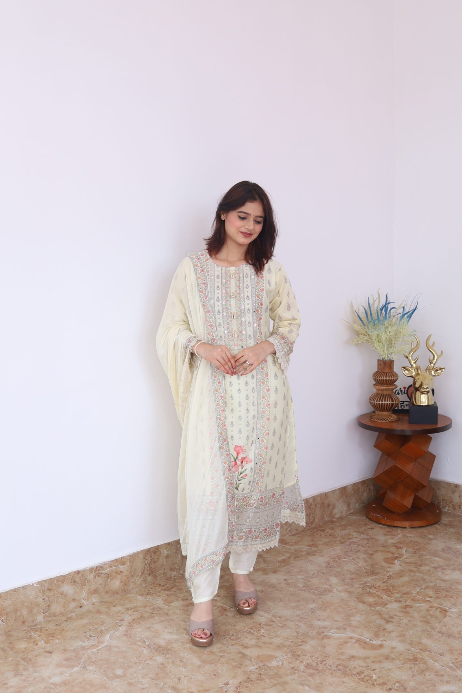 TANRAAYA Mustard Embroidered Kurta Set with Dupatta