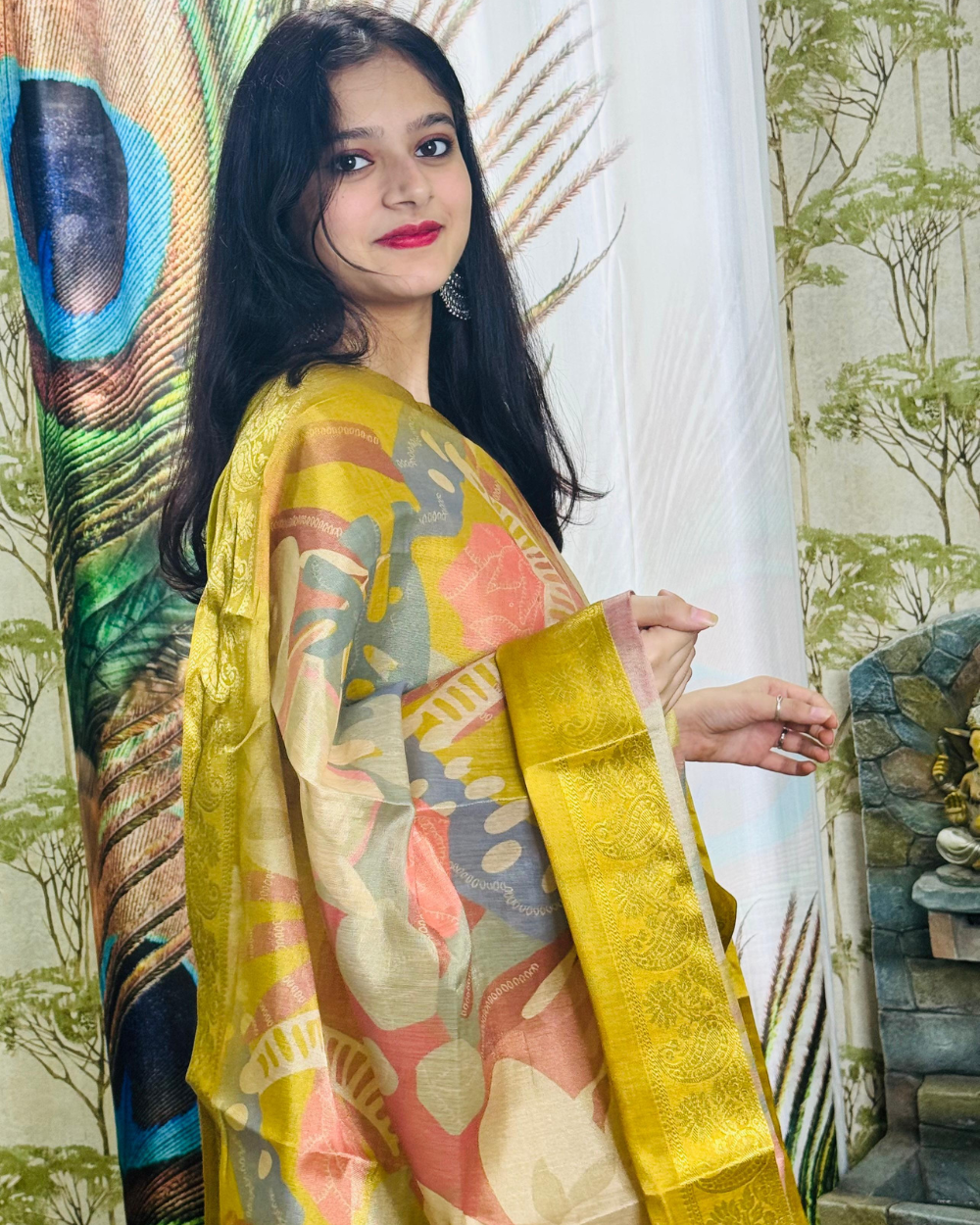 TANRAAYA Yellow Embroidered Kurta set with floral Dupatta