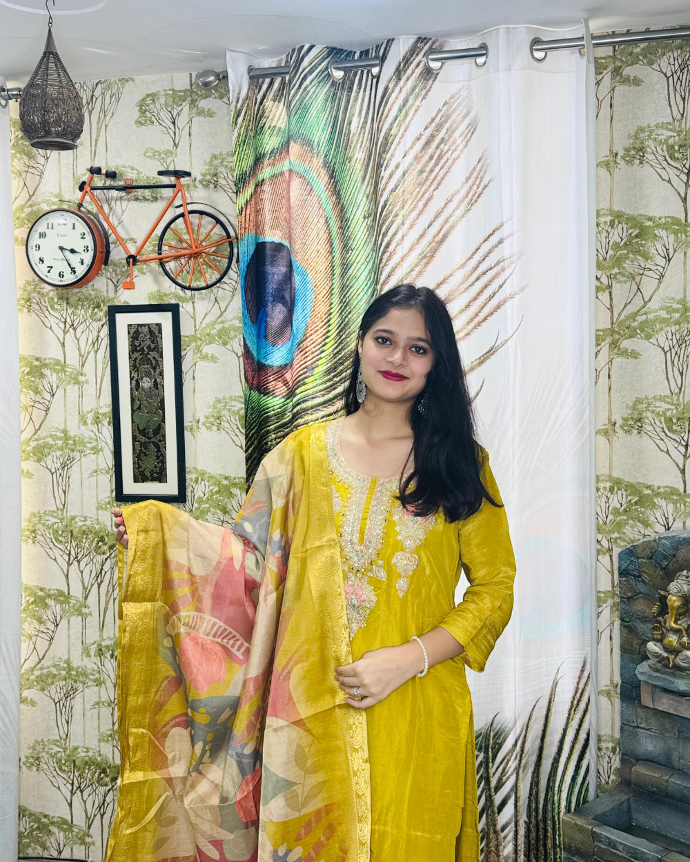 Be the first to review “TANRAAYA Yellow Embroidered Kurta set with floral Dupatta”